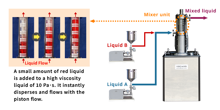 The VD has solved various issues in the reaction process with vibration vortices. It is capable of flexibly responding to reaction conditions including the mixing ratio, reaction time, stirring strength and temperature. Moreover, the highly efficient reaction contributes to reducing costs such as with a reduction in cleaning liquid waste in addition to reducing additives and unreacted substances.