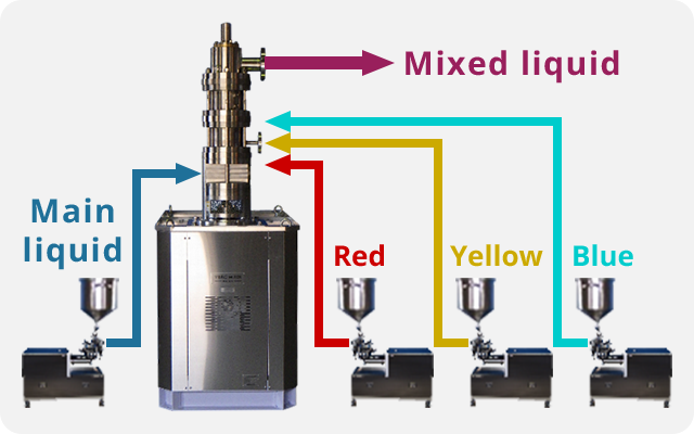 Mix high viscosity liquid into any color by adjusting the three primary colors.