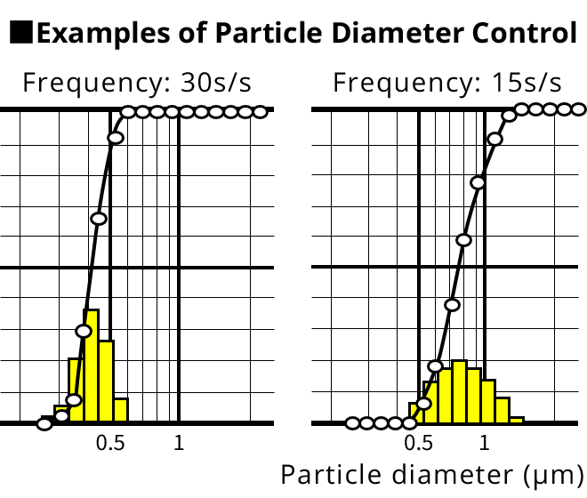 The VD has solved various issues in the reaction process with vibration vortices. It is capable of flexibly responding to reaction conditions including the mixing ratio, reaction time, stirring strength and temperature. Moreover, the highly efficient reaction contributes to reducing costs such as with a reduction in cleaning liquid waste in addition to reducing additives and unreacted substances.